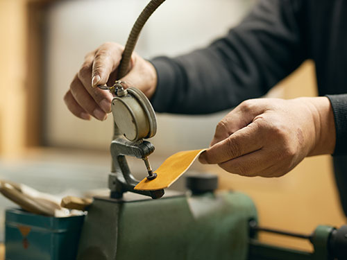 多くのブランドや大手の革製品のOEMを担当してきた経験から、ミシン縫製・裁断・コバ処理など、細部の精度が求められる工程を熟知しています。